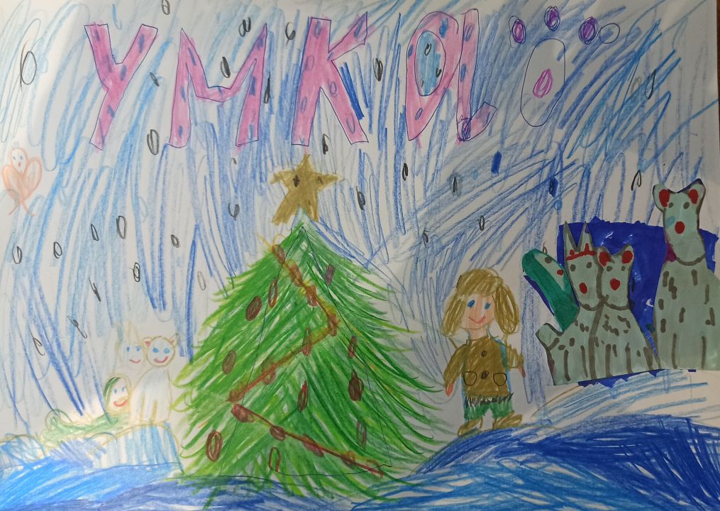 Я нарисовала Умку, его семью и друзей, они весело отмечают Рождество и Новый год!