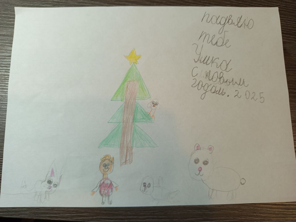 На рисунке я нарисовала Вику и его друзей. Поздравляю их с Новым Годом! Желаю новых приключений в предстоящем году.