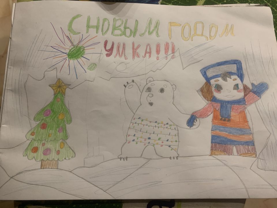 Не скажу что работа сложная, но я рисовала его час.Всех поздравляю с наступающим Новым годом 🎄Умка с наступающим праздником🎄🥳надеюсь вам понравится мой рисунок я очень старалась!