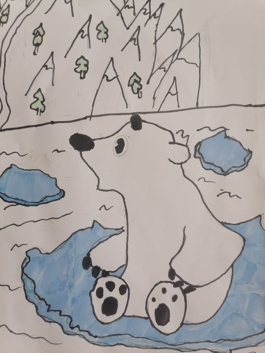 Мой рисунок называется "Умка на льдине", я захотела нарисовать именно этот эпизод потому что мне очень запомнился этот момент в мультфильме.