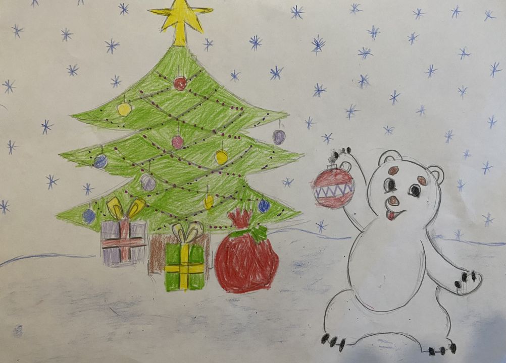 Меня зовут Ваня, учусь в 4 классе. Умка украшает елочку