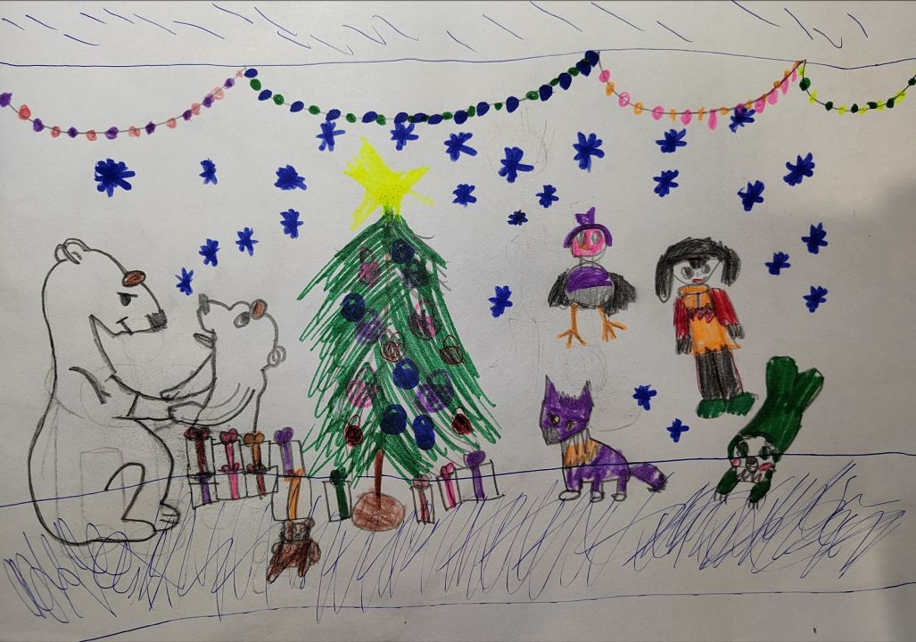 Так приятно встречать новый год в кругу родных и близких. Так и Умка , вместе с мамой, ждет своих друзей, чтобы открыть подарки!