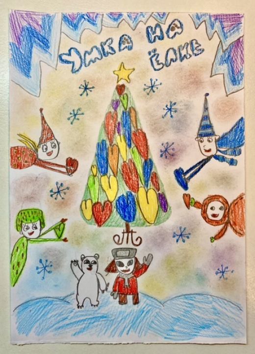 Сердечная новогодняя ёлка для Умки. Детки дарят свои сердца своими любимому герою :)