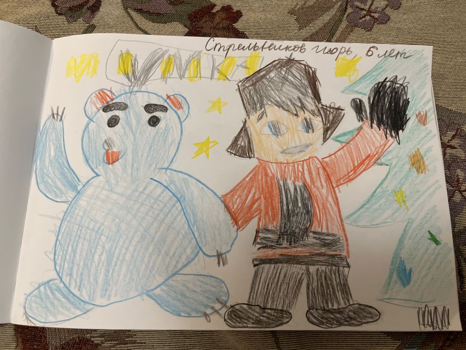 На рисунке я изобразил Умку и мальчика- его друга. Они спешат на новый год к ёлке, которую я тоже нарисовал.