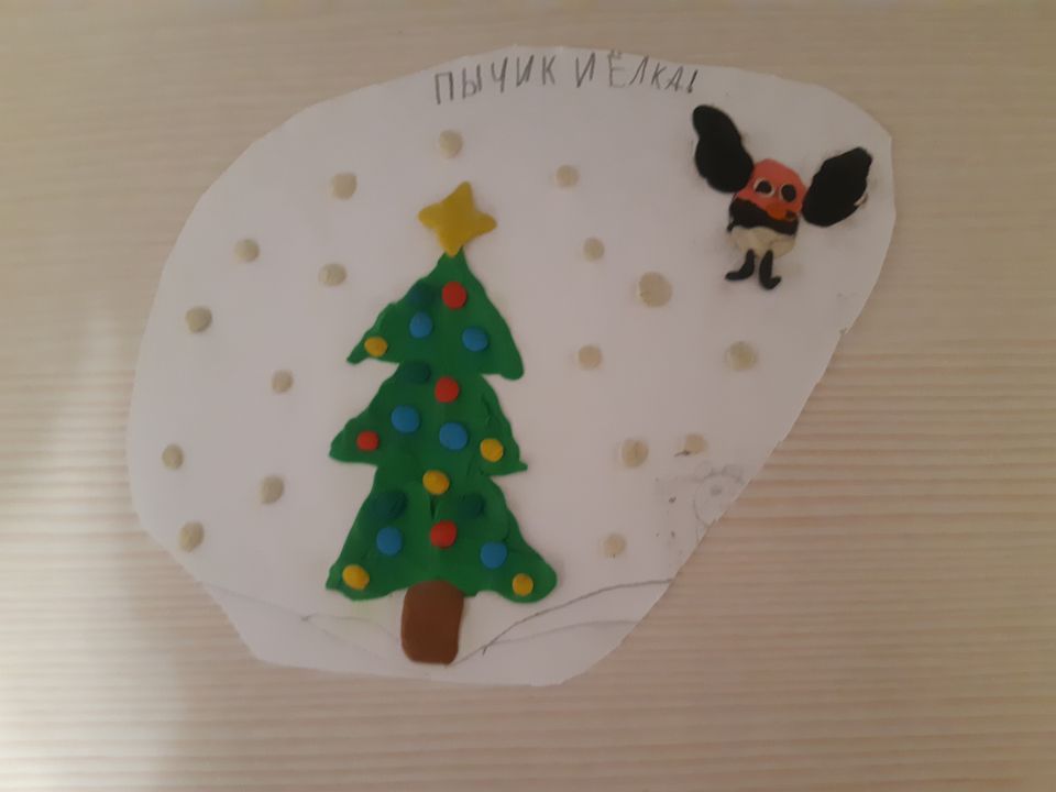 Моя работа сделана на листе бумаги с использованием пластилина. Я мечтаю, чтобы создатели мультфильма Умка увидели мою работу.