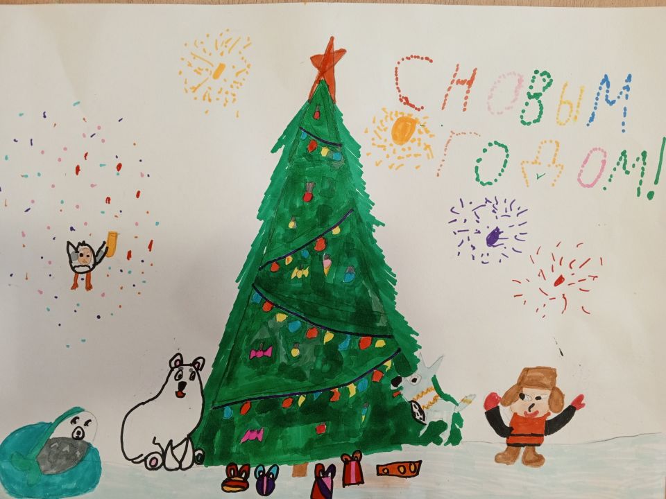 Умка и его друзья хотели запустить хлопушку, но кто-то из друзей запустил её раньше, чем нужно было. Поздравляю Умку с Новым годом, желаю ему много друзей, подарков и интересных приключений!