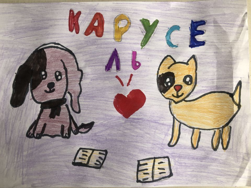 Собачка Гав и котик Пушок дружат и вместе познавательные книги. И смотрят передачи телеканала ,, Карусель,,!