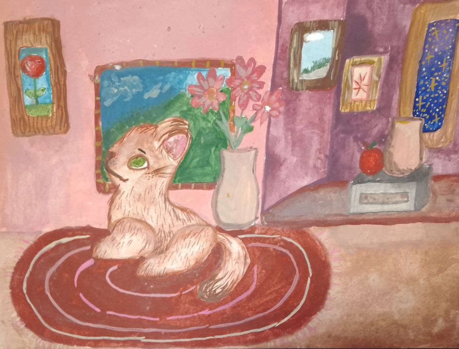 Это кот Сириус. Он охраняет музей замка от злых собак.У него есть своё место, где он может отдыхать.Один раз его не было на работе и на замок напал пёс, но пришёл кот Сириус и всех спас!