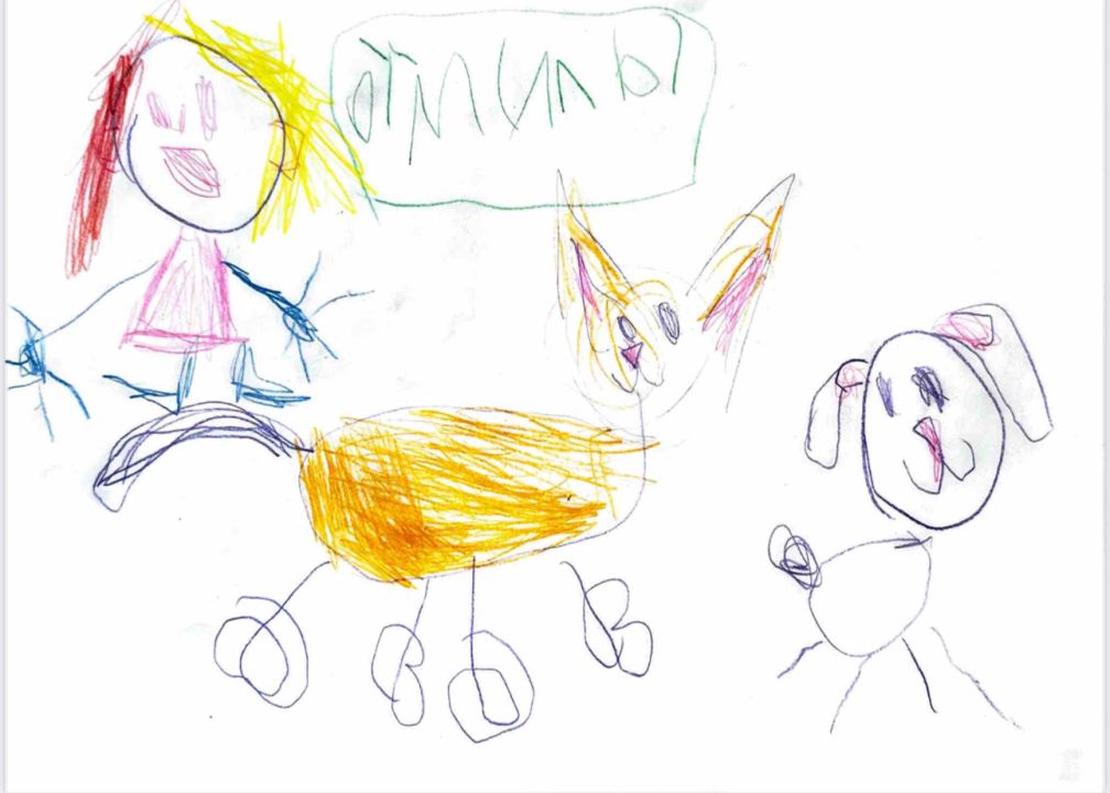 Со слов Милы: Они гуляли по парку с листочками, лепесточками, потом они зашли в палатку и купили корм, и пошли домой праздновать день рождения котейки.