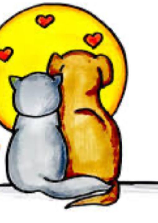 Собака с кошкой сидят под луной