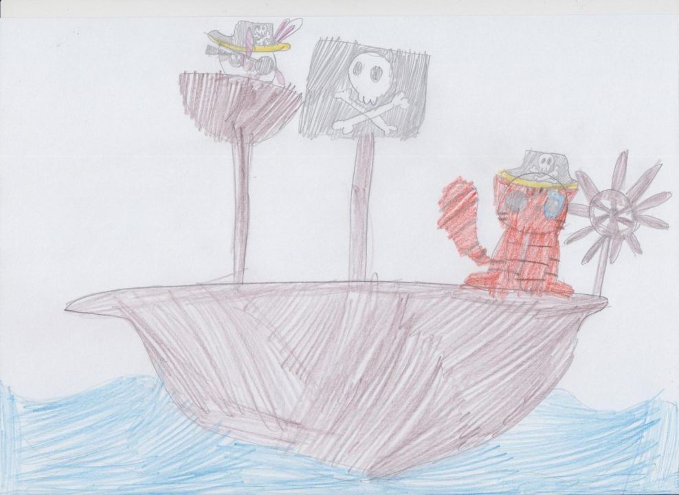 Однажды котёнок Сириус и банникорн отправились в пиратские приключения. Море сегодня было спокойным. Кораблик хорошо плыл. Котёнок Сириус рулил, а Банникорн стоял на вороньем гнезде и смотрел в трубу