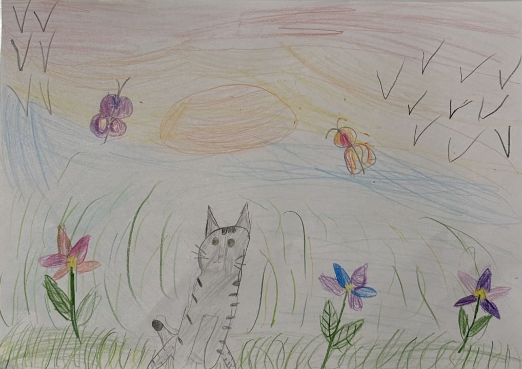 Кот Сириус, с серой шерсткой– настоящий мечтатель! Свои дни он проводит, наблюдая за порхающими бабочками. Эти крылатые друзья стали для него настоящим вдохновением!