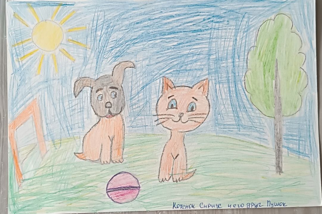 Котенок Сириус и его друг Пушок любят играть в мячик.