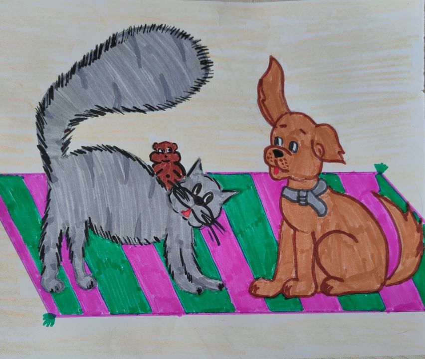 Котик Сириус знакомит Рыжика со своим другом хомяком по имени Тимка.