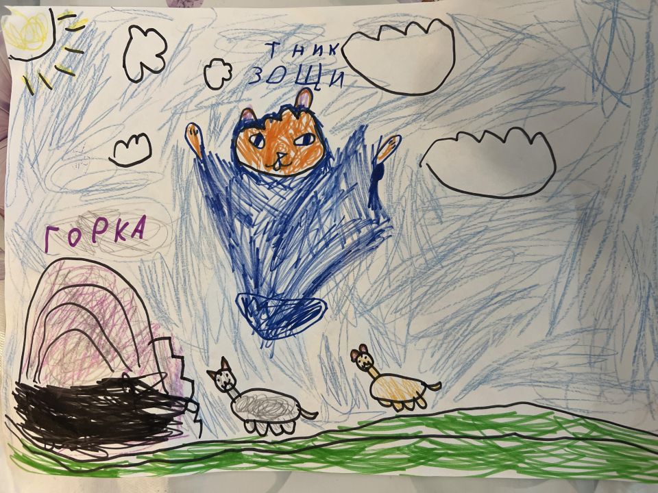 Котёнок Сириус и его друг шарик пошли кататься с горки. К ним пришел их друг Защитник. Он рассказал им, как безопасно кататься с горки.