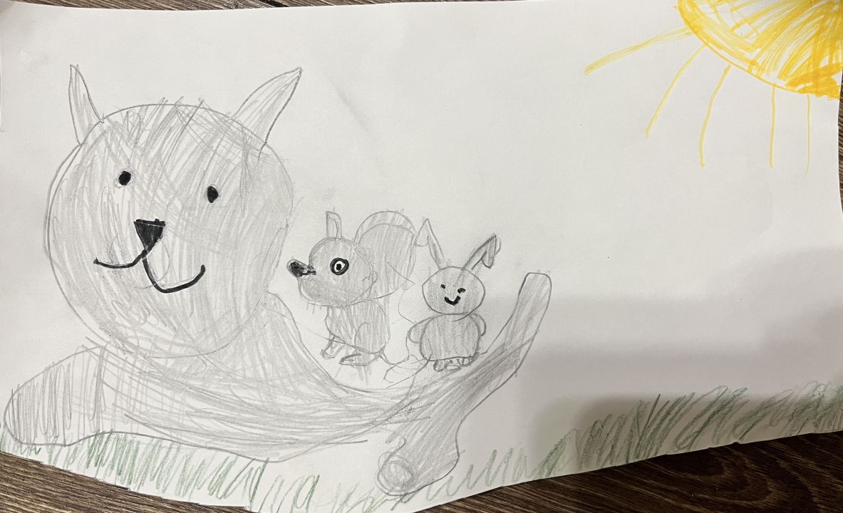 Котик Сириус и его друзья мышка и зайчик отправились на прогулку. Там котик решил их покатать.