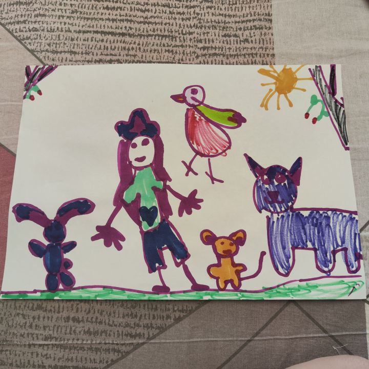 Новые друзья Сириуса: мышка -Пипи, птичка-Макс , зайчик - Ирис. Девочка - Маша.