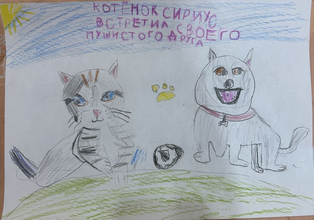 Котенок Сириус любит гулять и играть со своим любимым другом