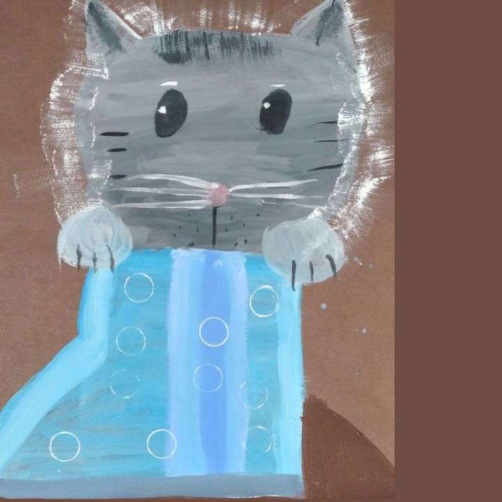 Котенок Сириус спрятался от своего друга в сапоге. Они играют в прятки.