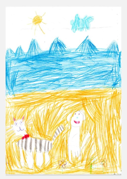 Однажды кот Красавчик загрустил. Он надел свою нарядную бабочку и пошёл гулять по полю. По дороге он встретил своего верного друга пса по кличке Ван Гог. Друзья пошли вместе.