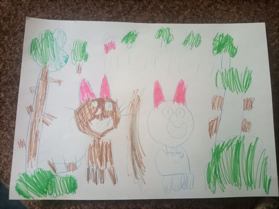 Это мой Сириус, он встретил друга Пушистика, такого же как он сам и они вместе гуляют по лесу.