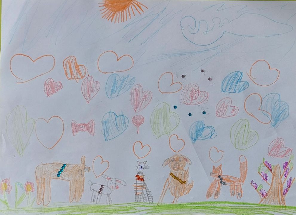 Здравствуйте. Я нарисовала котёнка и его друзей.