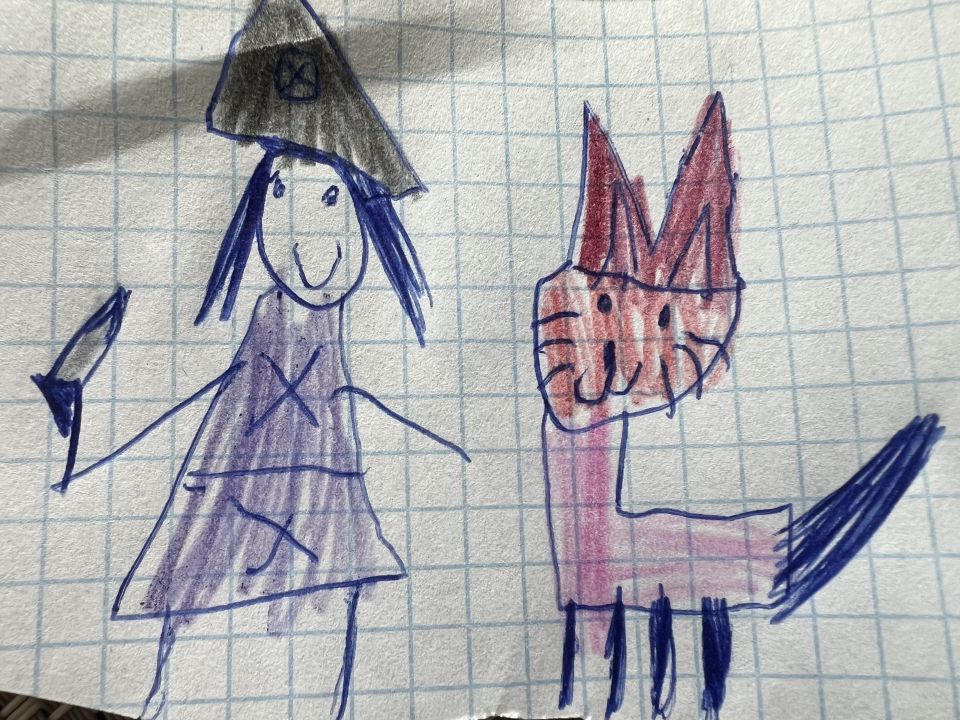 На рисунке изображена девочка пират и её пиратский котик, но девочка была не злым пиратом, а добрым. Помогала людям и животным, жизнь её команды всегда наполнена добром и смешными историями.