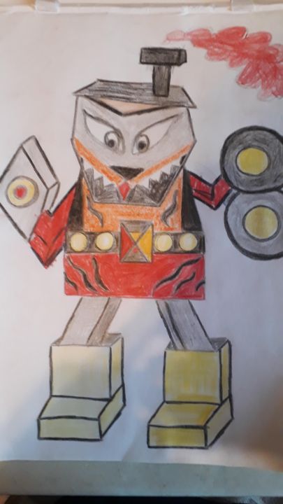 Его зовут робот-поезд Тигрук. Он умеет затаиваться как тигр, быть невидимым, потому что умеет выпускать дым из трубы и прятаться в нем. У Тигрука есть двойная пушка, из которой летит молния и вторая пушка, которая стреляет огнем и помогает цепляться за деревья и дома. Еще у него страшные зубы, и он очень сильный!!!